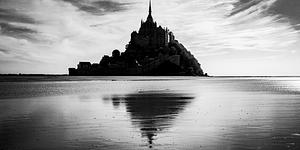 Silhouette and mirror effect of Mount Saint Michel, Normandy, France