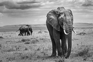 Matriarch elephant in tanzanian savannah, Serengeti National Park
