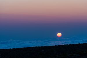 Pastel sunset over a sea of clouds, island of La Réunion, France , 2018